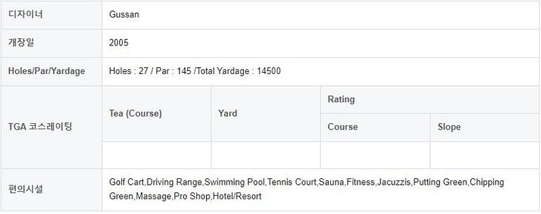 태국적인 느낌이 강하며, 코스는 레이스코스, 우드코스, 링크스코스 이렇게 3개 형태로 구성되어 있습니다.